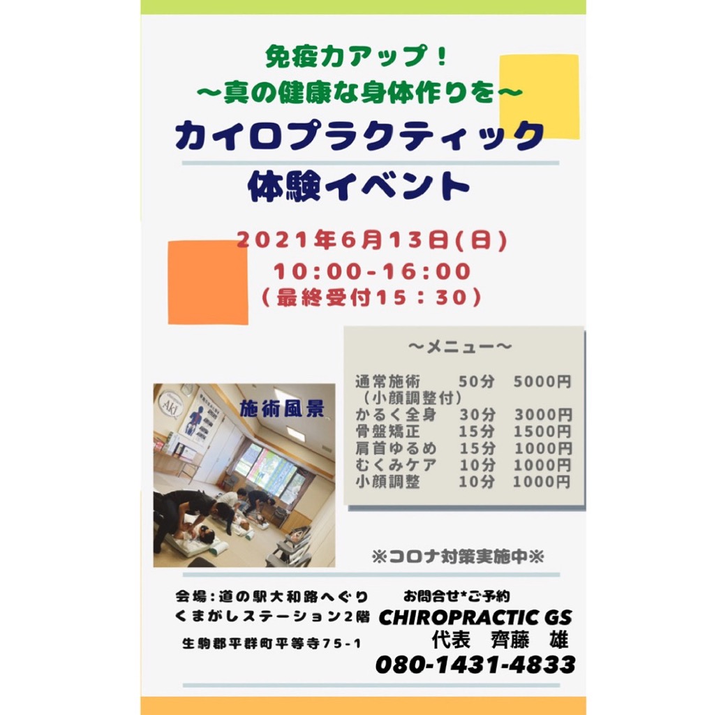 毎月恒例道の駅へぐりにてカイロプラクティック体験イベント行います👏