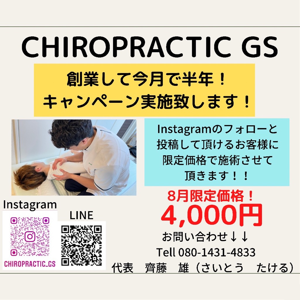 ※Instagramでのフォローと@chiropractic_gsをタグ付けでの投稿を施術後にお願い致します。