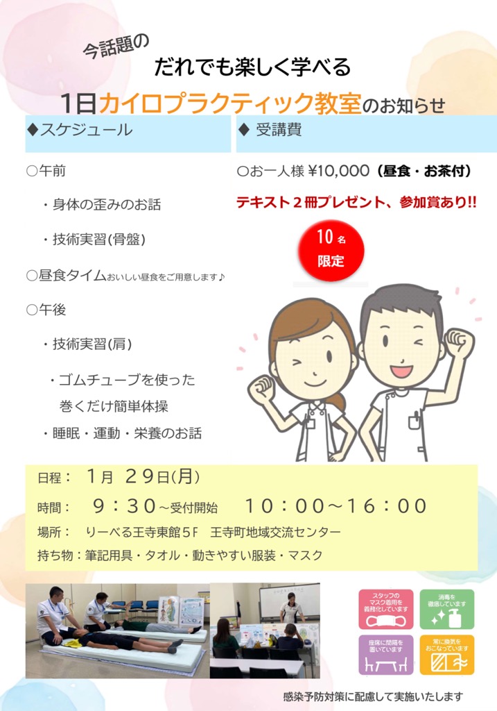 1月29日にりーべる王寺にて1日カイロプラクティック教室を開催致します‼️
