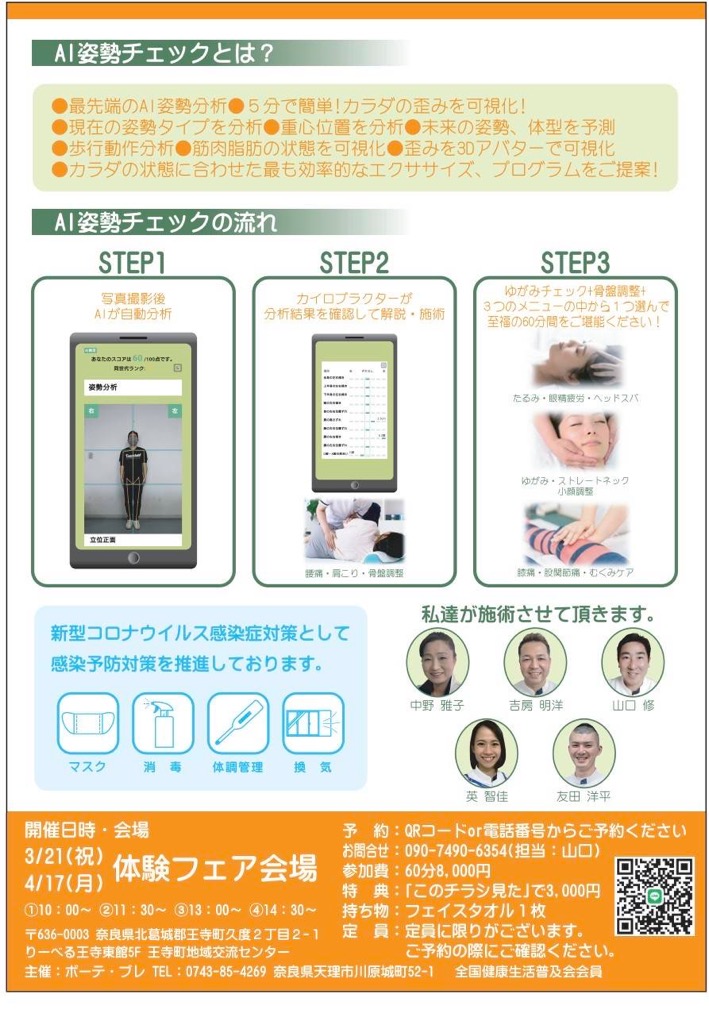 3月21日・4月17日にりーべる王寺にてカイロプラクティックのイベント開催致します‼️